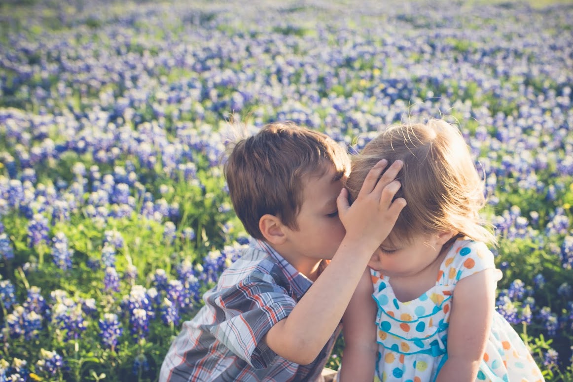 | Luke is getting a kiss from Abbey here because he was saddened by an ant who was trying to bite his leg. |